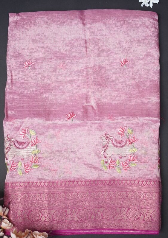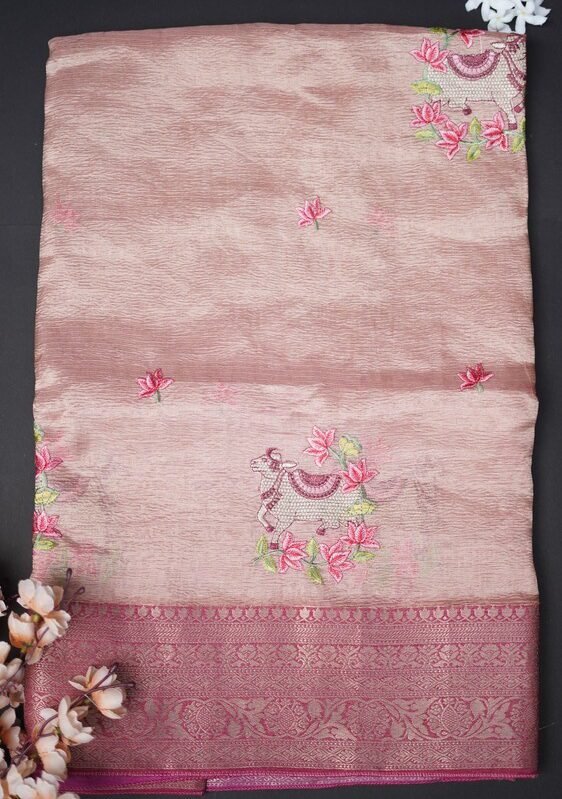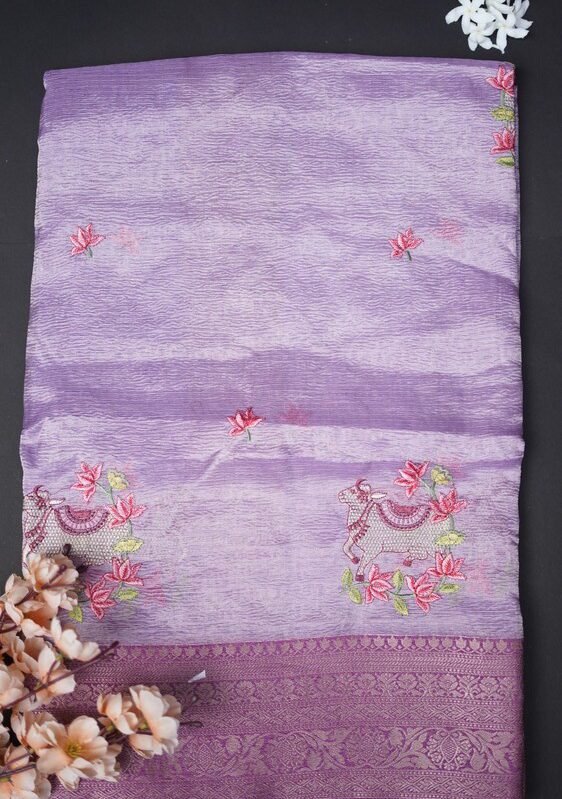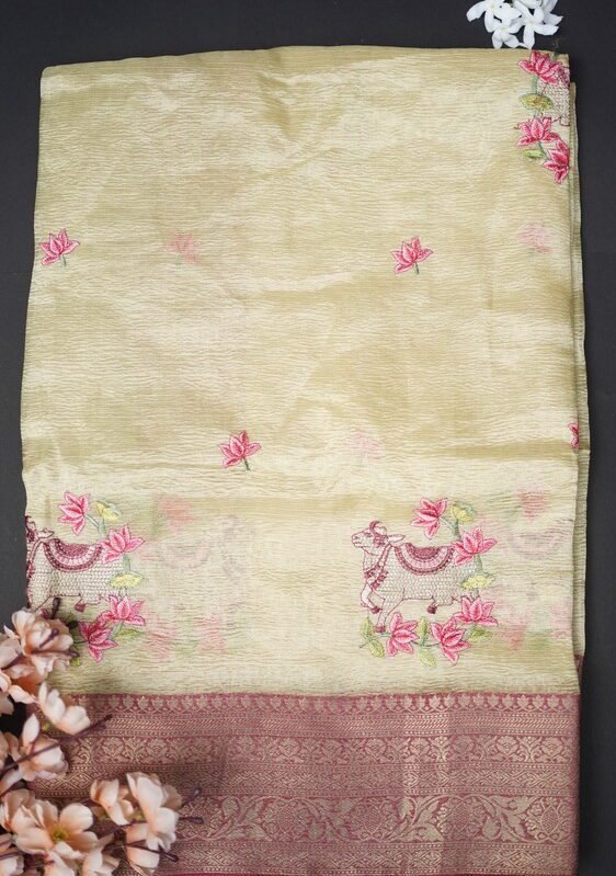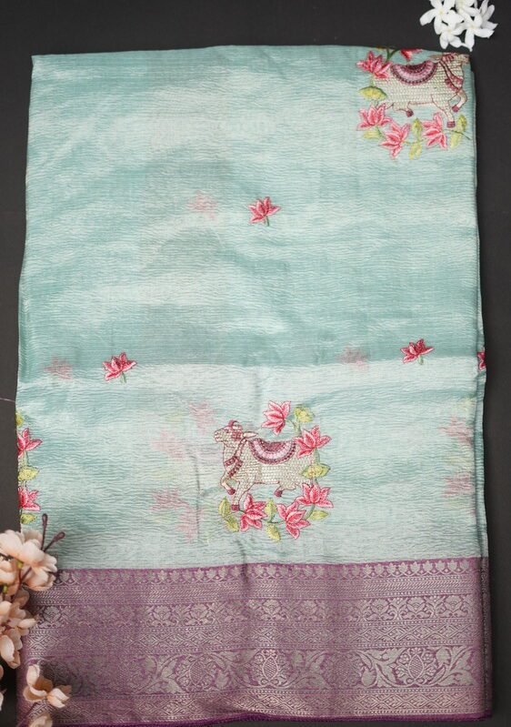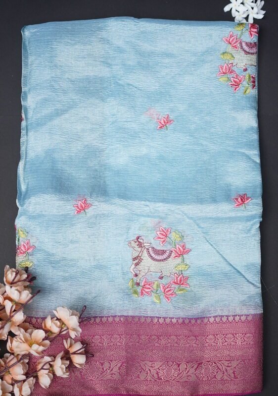Crush Tissue Zari Kota sarees with embroidery.. Contrast blouse..