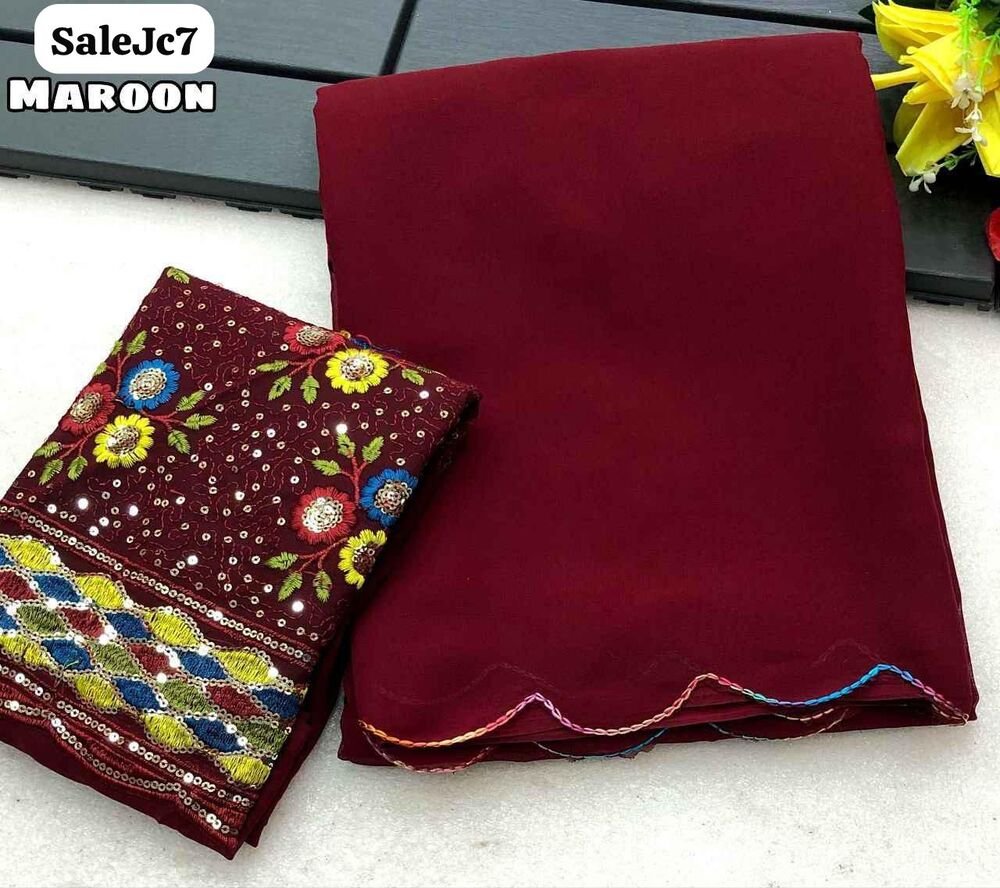 Chiffon with beautiful multi thread embroidery work scalloped border Blouse – embroidery & sequence work blouse weight 420 Grams