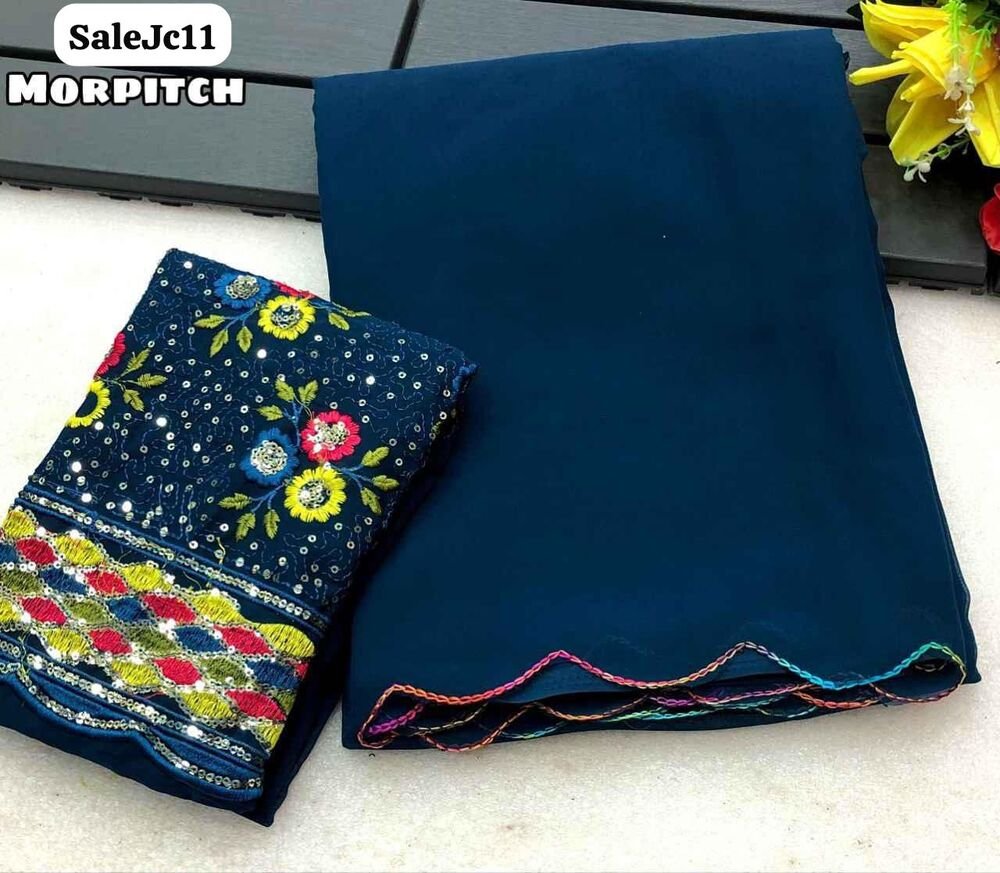 Chiffon with beautiful multi thread embroidery work scalloped border Blouse – embroidery & sequence work blouse weight 420 Grams