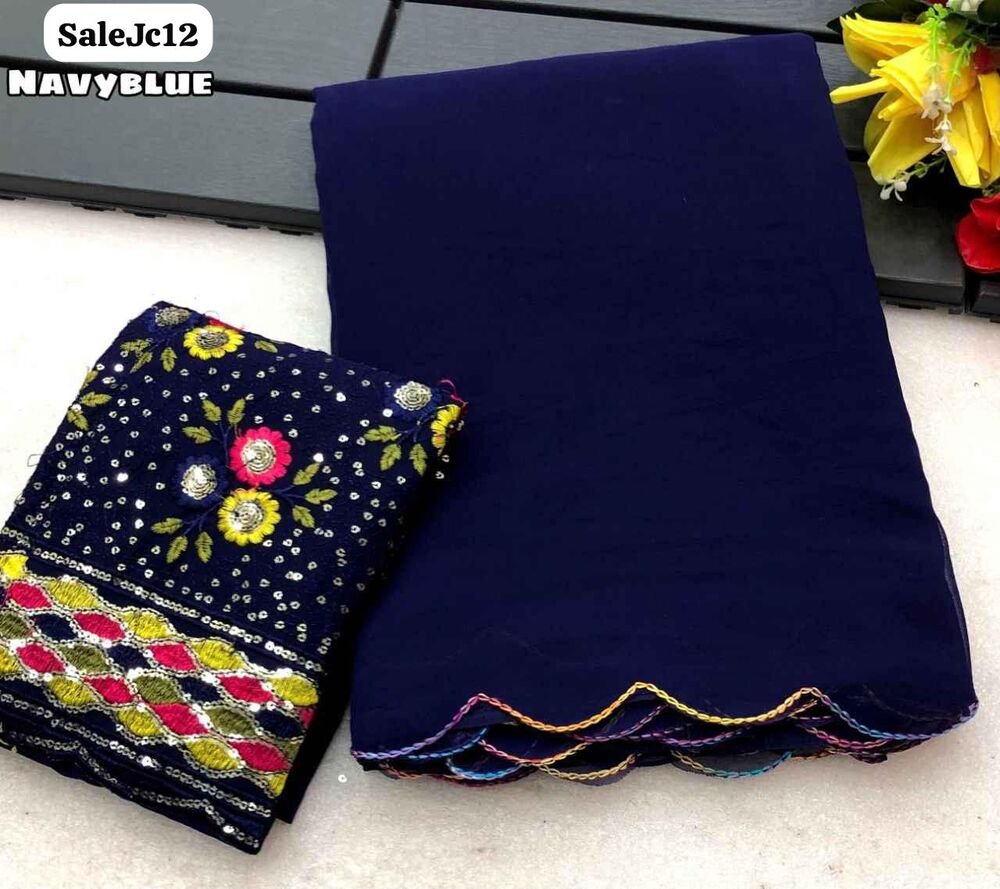 Chiffon with beautiful multi thread embroidery work scalloped border Blouse – embroidery & sequence work blouse weight 420 Grams