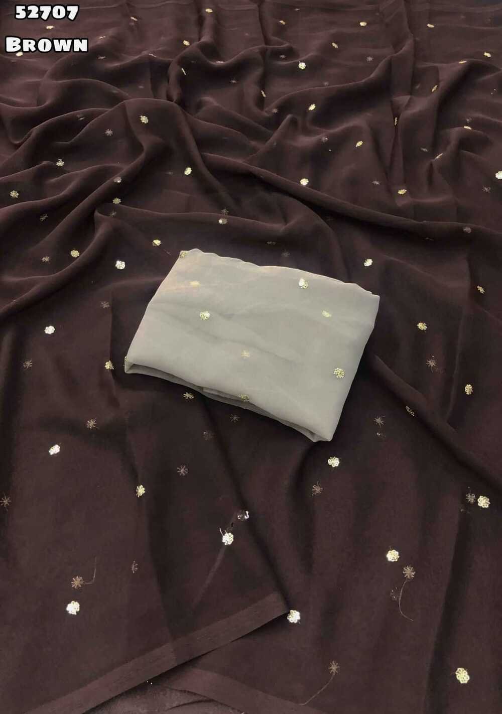 Launching new Faux Georgette sequence Embroidery work butti saree Blouse – Contrast sequence work blouse weight 450 Grams