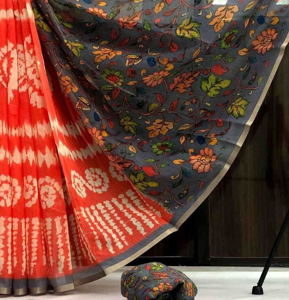 Soft Chanderi Bandhani digital print with beautiful printed pallu & zari patti border Blouse – contrast printed blouse