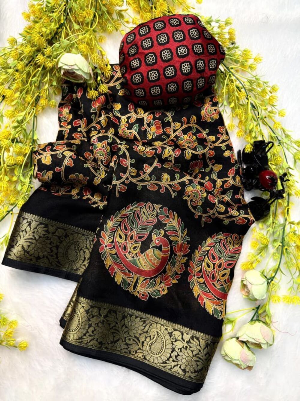 Be the first to review “Soft georgette crepe saree with kashmiri print all over and weaving border With running printed blouse”