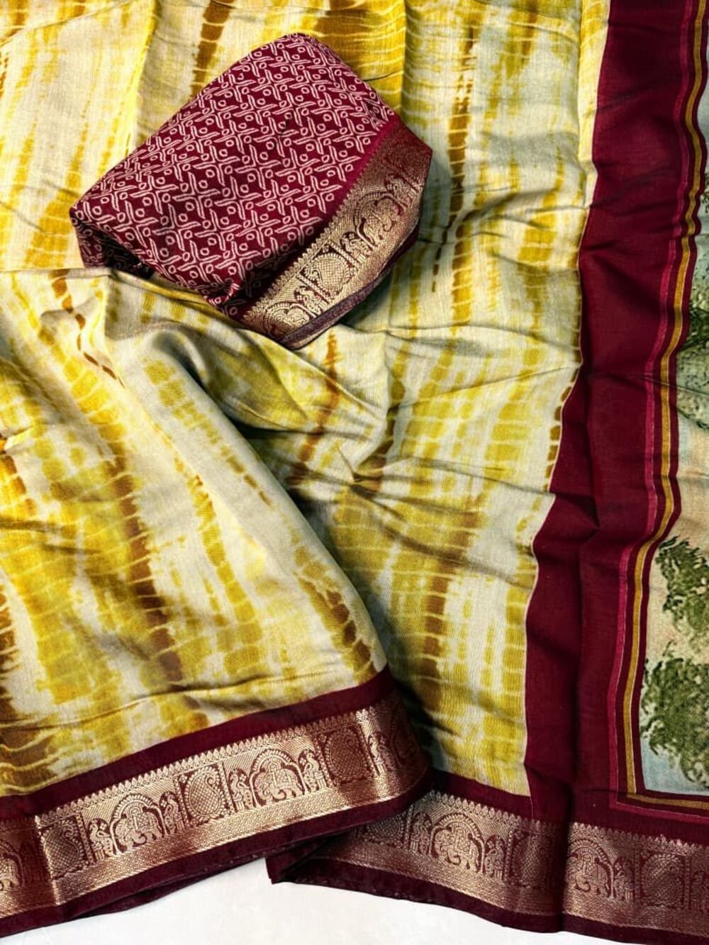 Soft Mangalagiri silk with shibori print in body and village handpaint concept print in pallu Comes with nizam border And contrast blouse