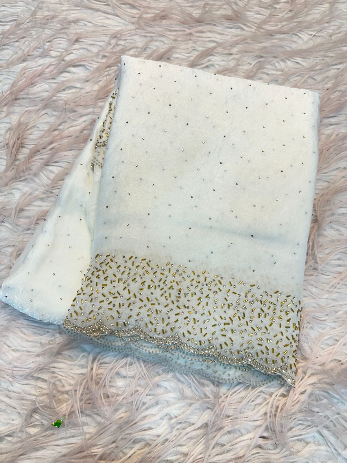 Be the first to review “Soft Space Silk Saree in fancy colour range with Fancy Jarkhan in body and cutwork design Sarees With contrast Work Blouse”